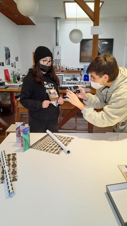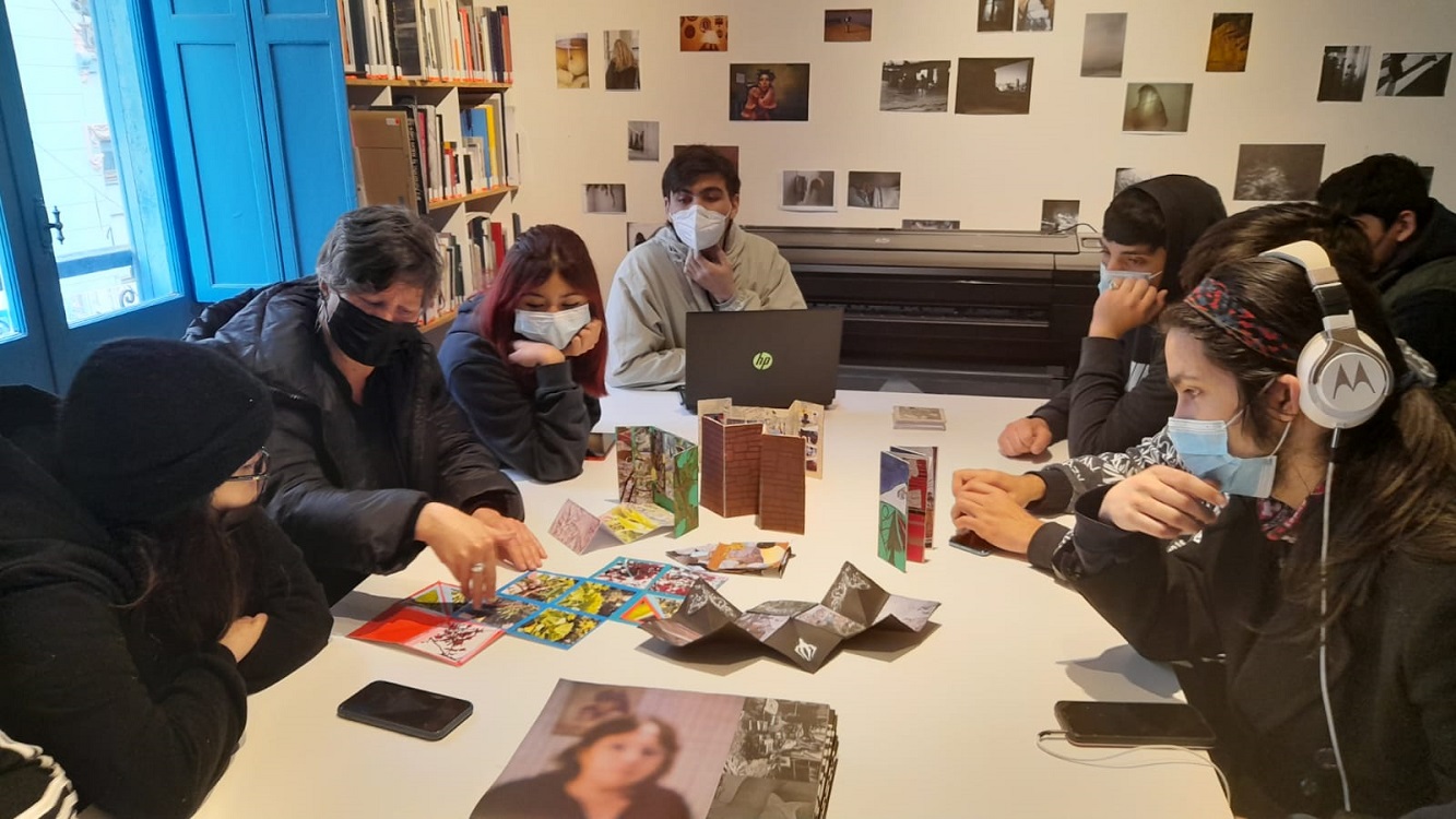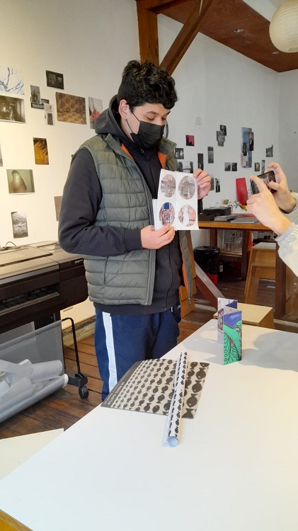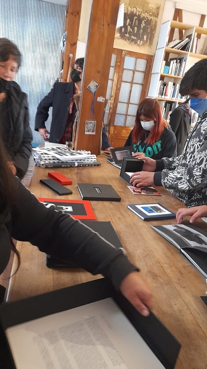 Trabajamos diferentes técnicas para lograr que los chicos lleguen a construir, sacar fotografías con sus celulares de lo que es su entorno y que con las fotografías definieran lo que, para ellos significa la raíz y un caos o raíz y caos.  Luego estas fotografías las vincularon a un libro plegable que a la vez termina siendo también una obra de arte. O sea ,es importante que niños de menos de 18 años estén exponiendo en una feria internacional de fotografía en Valparaíso. Es algo nuevo dentro del festival y le da tremendo valor a los estudiantes y a lo que ellos pueden lograr, a los establecimientos y a los educadores, viendo que podemos lograr en la parte artística patrimonial con los estudiantes.